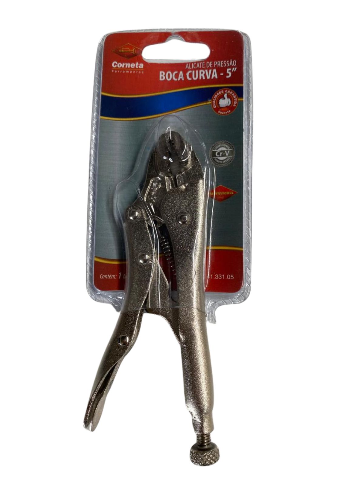ALICATE PRESSAO BOCA CURVA 5" Modelo: 4133105 Dimensões da Peça:145mmX40mmX14mm Dimensões da Embalagem:200*90mm Dimensões Master:46CMX42CMX26CM Alicate de pressão Curvo é ideal para segurar, fixar, prender, travar e apertar os mais diversos materiais como perfilados, peças a serem usinadas, chapas e tubos metálicos. Fabricado com aço cromado, proporcionando resistência. Especificações: Largura do Mordente: Capacidade de Abertura: Material: AÇO CROMO VANÁDIO Cor: Cromado Tipo de Embalagem: BLISTER 2 PARTES Marca: CORNETA Espessura: 9mm