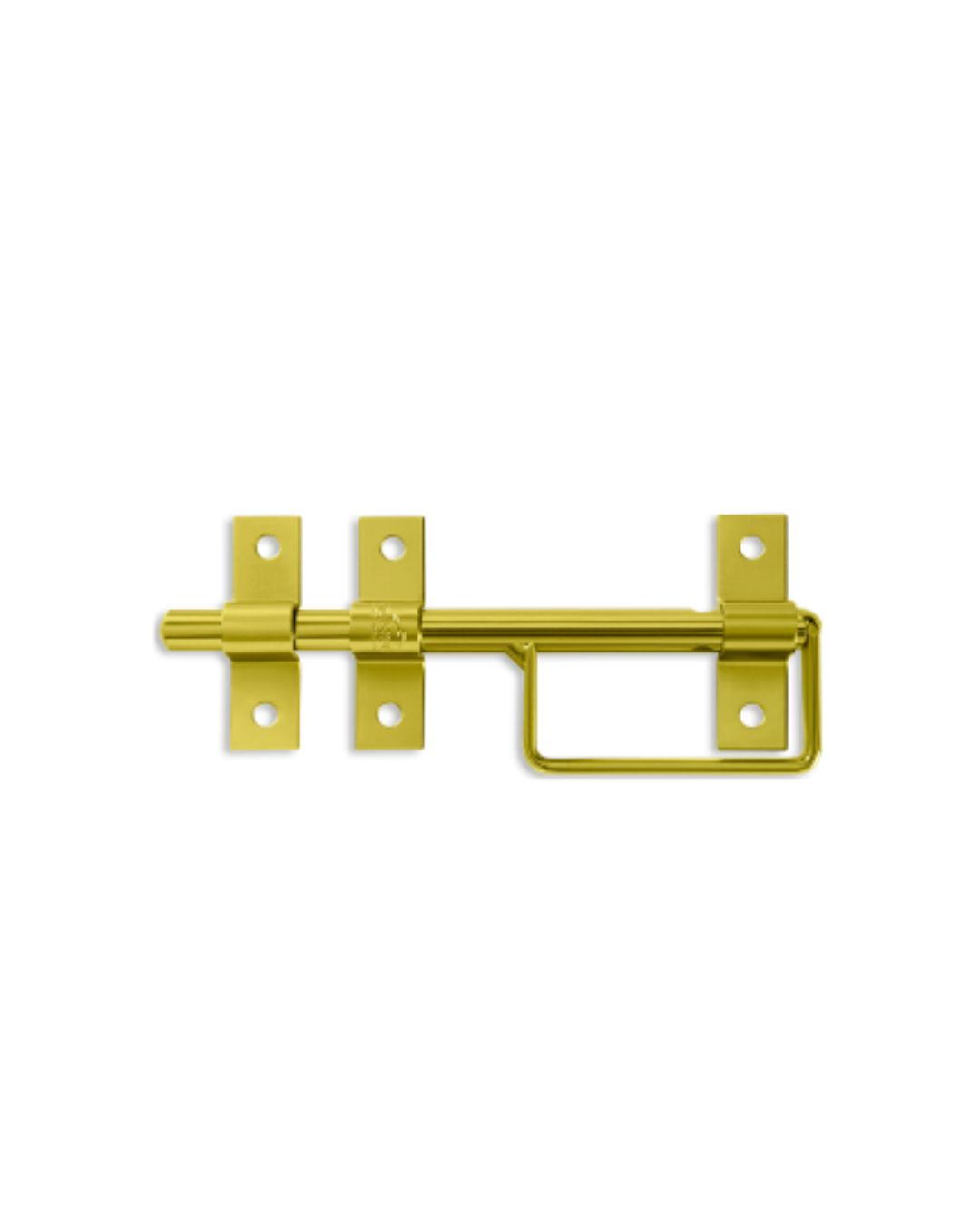 Acabamento DOURADO: Processo de galvanização a frio onde o produto absorve partículas de zinco, em seguida passa pela passivação onde adquire a cor e finaliza com uma fina camada de verniz. Acabamento resistente a escoriações e intempéries atmosféricas como sol, chuva, maresia etc. Este acabamento pode receber soldas.